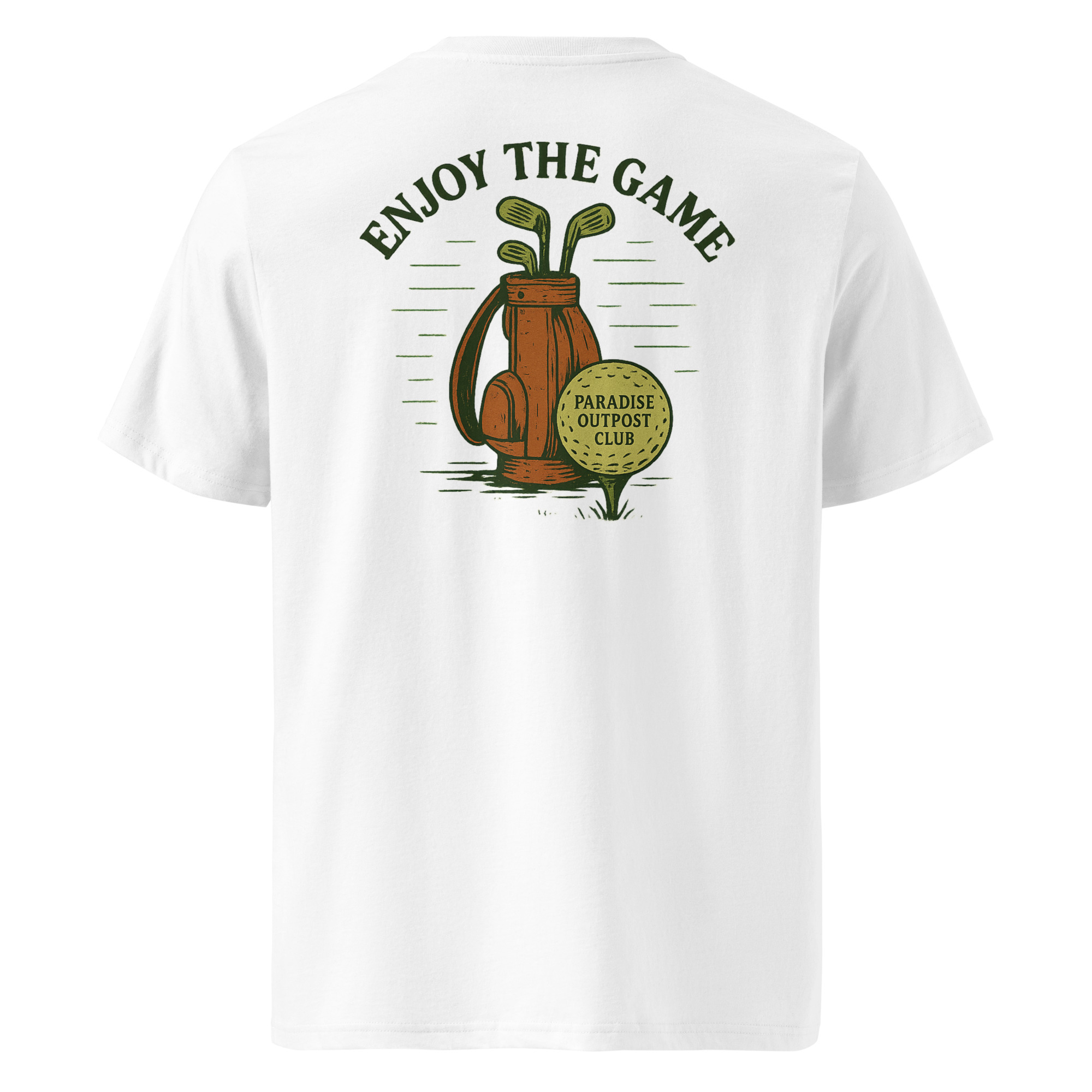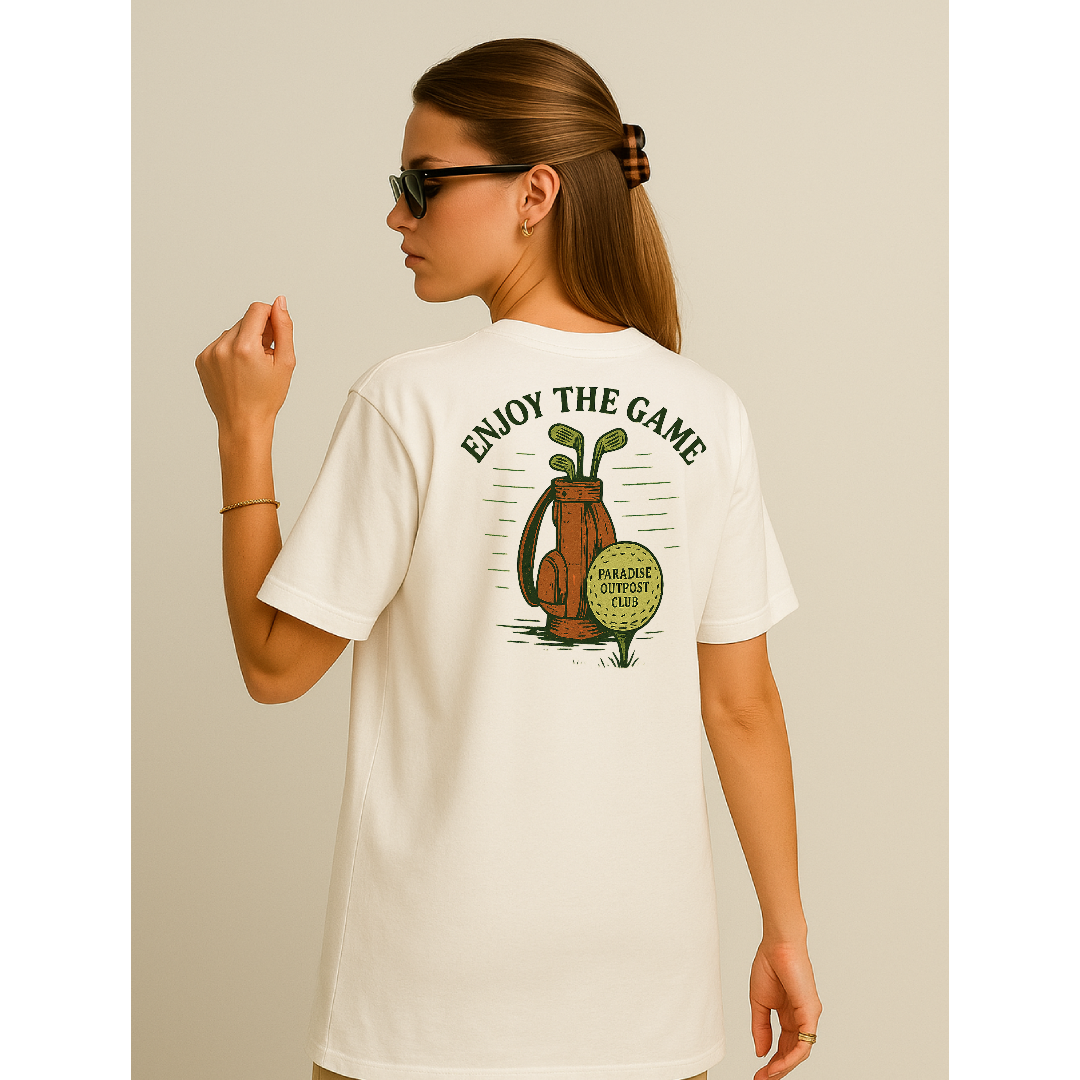 “Enjoy the Game” es un homenaje al deporte más elegante donde fingimos no competir y a la vez queremos hundir al colega con un +12. Con un diseño retro en tonos cálidos, esta camiseta lleva un claro mensaje: da igual si sabes jugar, lo importante es parecerlo.